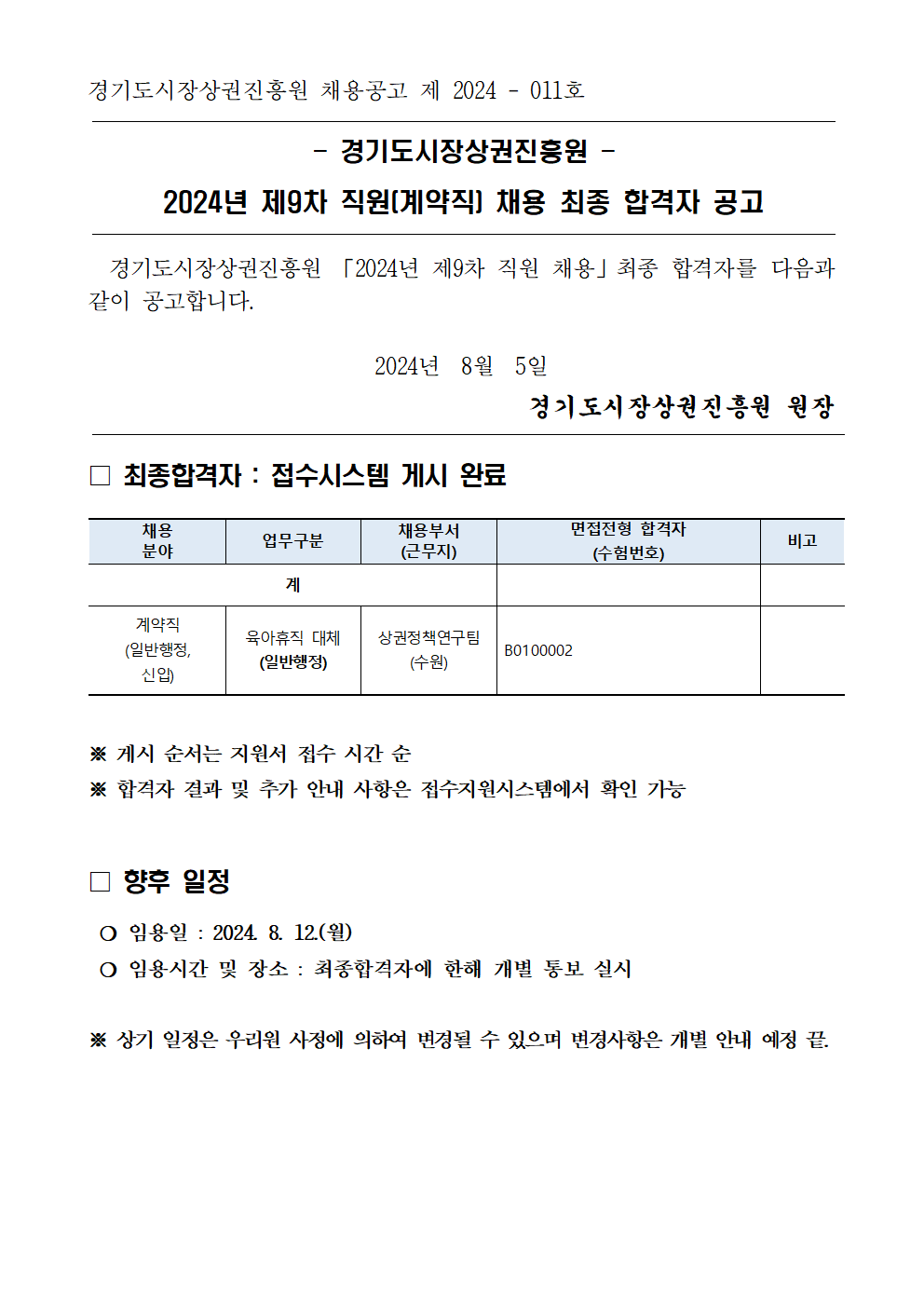 2024년 제9차 경기도시장상권진흥원 직원(계약직) 면접전형 합격자 공고